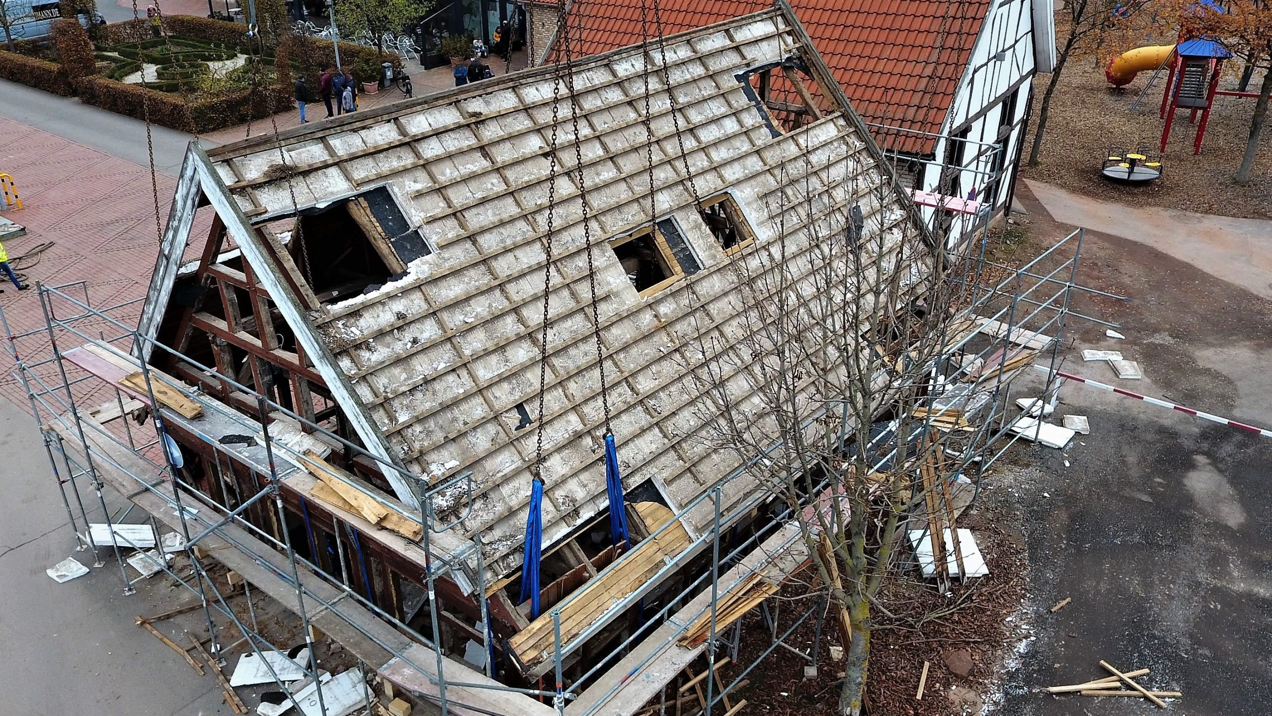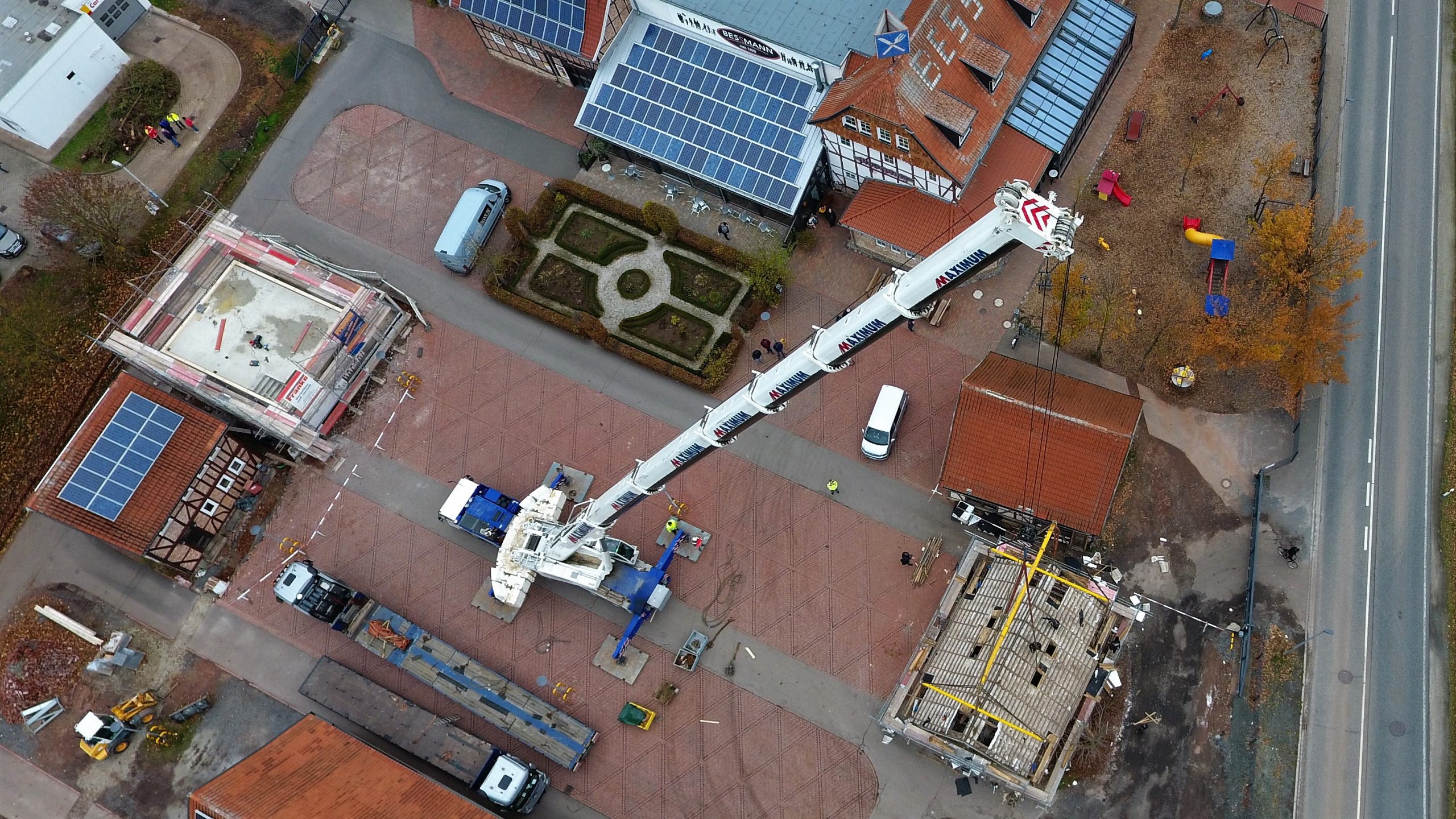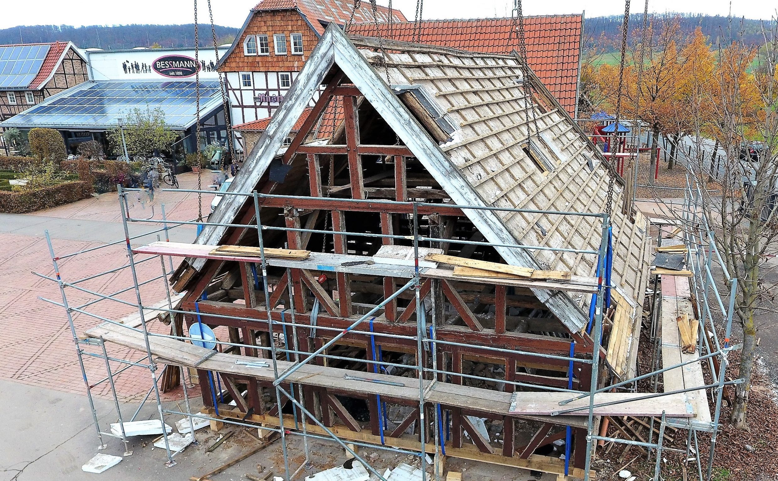 14 Tonnen schwer ist das Gerippe des Fachwerkhauses gewesen, das am 13. November in Breitenworbis an einem Kran hing. Weil die Parkplatzsituation beim Modegeschäft Bessmann in Breitenworbis verbessert werden sollte, musste das Fachwerkhaus an eine andere Stelle platziert werden. Ein Abriss kam selbstverständlich nicht in Frage. Denn wer Bessmann kennt, kennt auch die Leidenschaft für Fachwerkhäuser des Familienunternehmens. Diese stehen heute als Markenzeichen für das mittelständische Unternehmen.